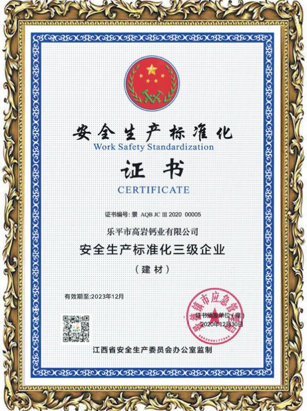 安全生產(chǎn)標(biāo)準(zhǔn)化證書