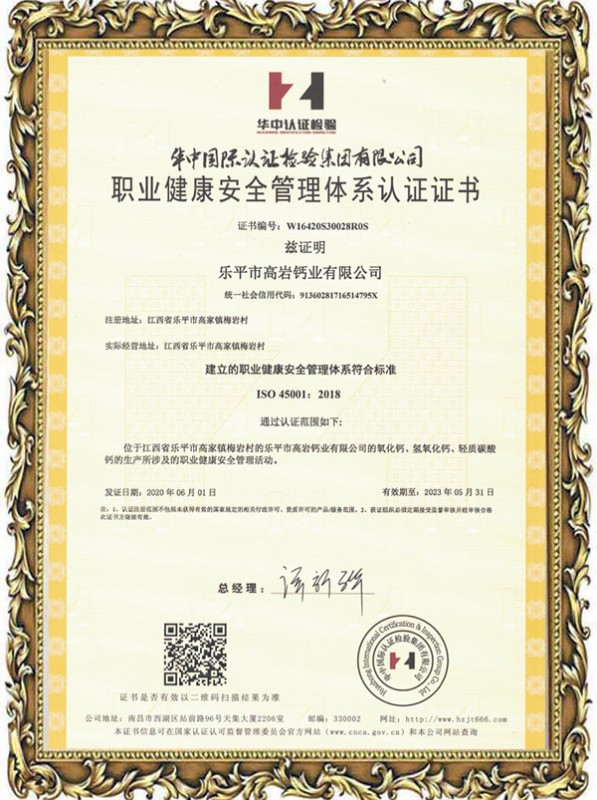 職業(yè)健康安全管理體系認(rèn)證證書
